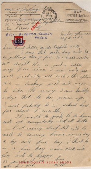 - Letter: August 02, 1942, From war station to Sallie and Cafford Bingham