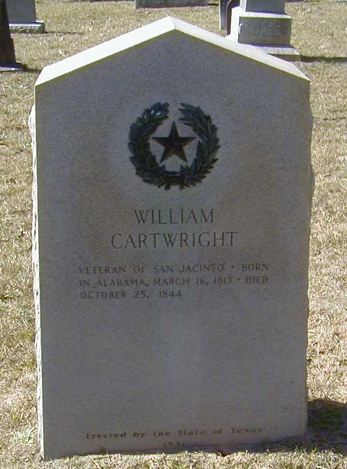 William Peter Cartwright was born March 16, 1813 and died in Alabama, and died October 25, 1844 in Texas. He was the son of Thomas Peter Cartwright, Jr. and Elizabeth Shaw.