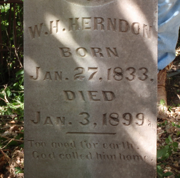 Lucinda (Ella?) Dyches was born November 17, 1840 in Jefferson County, TX and died September 2, 1915 in Coleman County, Texas. She married William H. Herndon. He was born Jan 27, 1833 and died January 3, 1899. January 3 is a strangely coincidental date for this family. Lucinda’s sister, Jerusha, was born on that day in 1835. Her sister Lavica Dyches Bingham died on that day in 1910 (and a direct descendant was married on that day decades later).