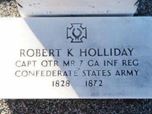 ROBERT KENNEDY HOLLIDAY was born 06 Apr 1829 in Laurens County, South Carolina, and died 24 Dec 1872 in Fayetteville, Fayette County, Ga. He was the sixth child of Robert Alexander Holliday and Rebecca Burroughs. He married MARY ANN FITZGERALD 06 Mar 1848 in Fayetteville, Fayette County, GA.. She was born Abt. 1832 in Georgia.