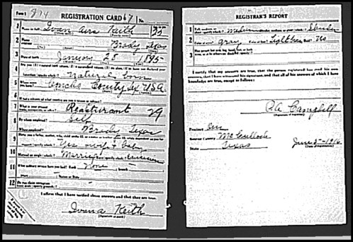 Ivan was a very versatile, motivated man; and seemed to be able to master any any task. He took up photography and made his own darkroom to develop his pictures when he was a young man. When he registered for the draft at the age of 23, he was the proud owner of his own restaurant. in Brady, TX.