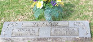 | VESTER GLEN YEAGER | b. 31 Jul 1893, Johnson County, Arkansas; d. Sep 7, 1980, Johnson County, Arkansas; M. Pairlee M. (unknown) |